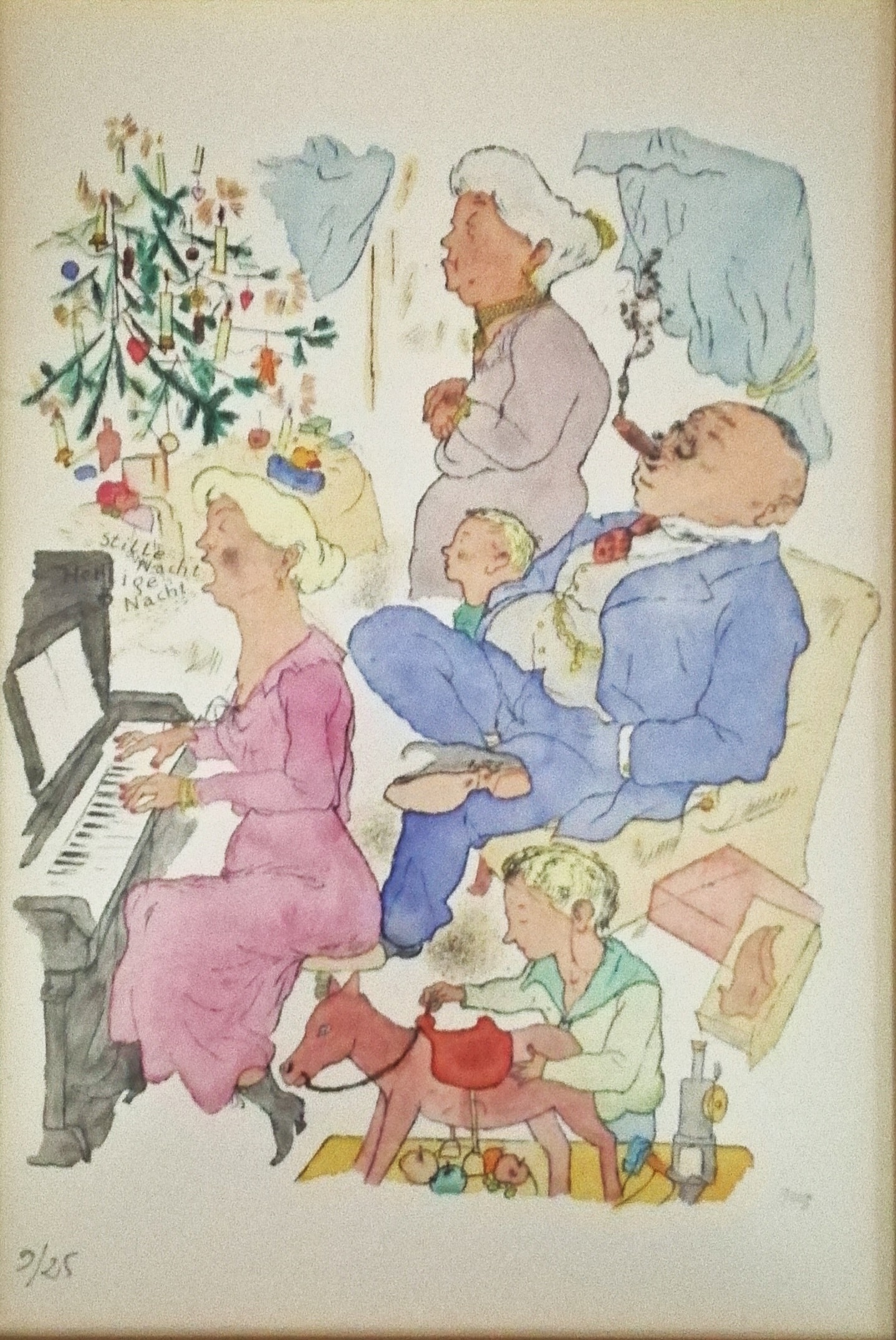 • La obra representa de manera caricaturizada las festividades navideñas de la clase burguesa, que el artista considera alejados de la realidad de la Alemania de los años 20.