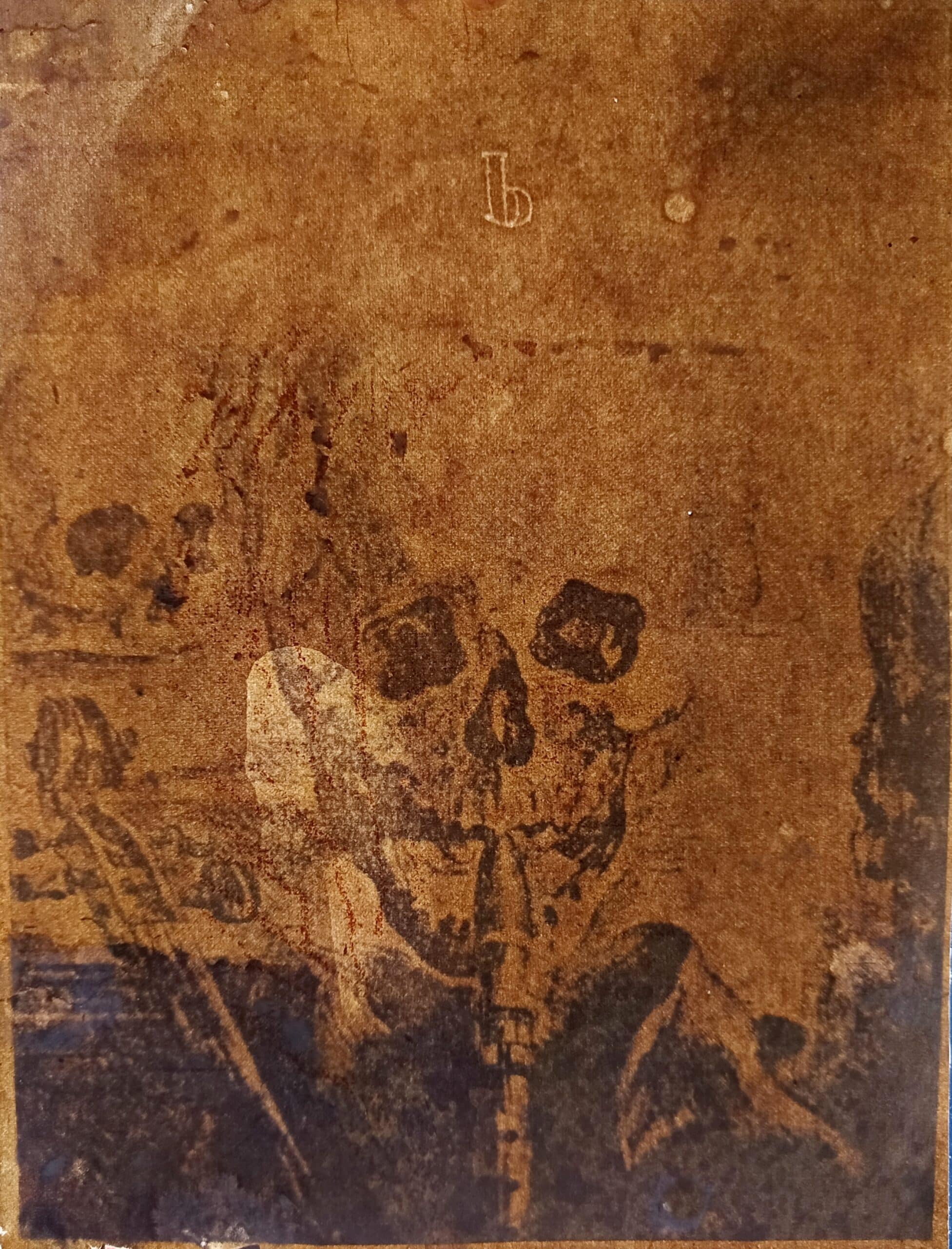 - La pieza representa una calavera tocando lo que parece ser una flauta; este tipo de representaciones serán las típicas de la actividad artística de Ensor especialmente a partir de la década de 1880.